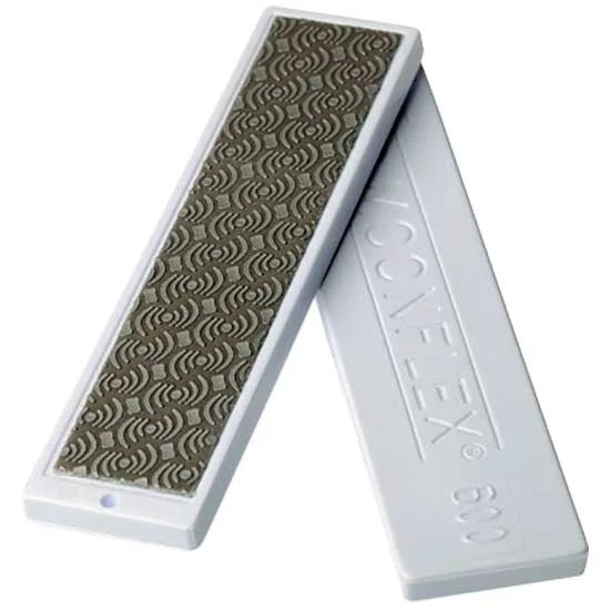 - Initial polishing with a coarse stone is necessary to remove striations in the edge as a result of filing. Use a progression of finer stones in subsequent passes.